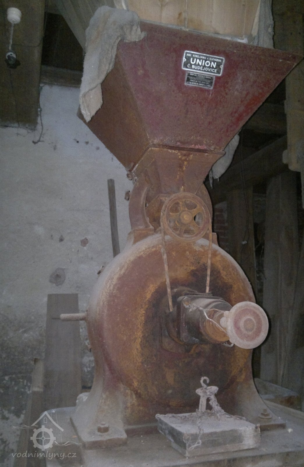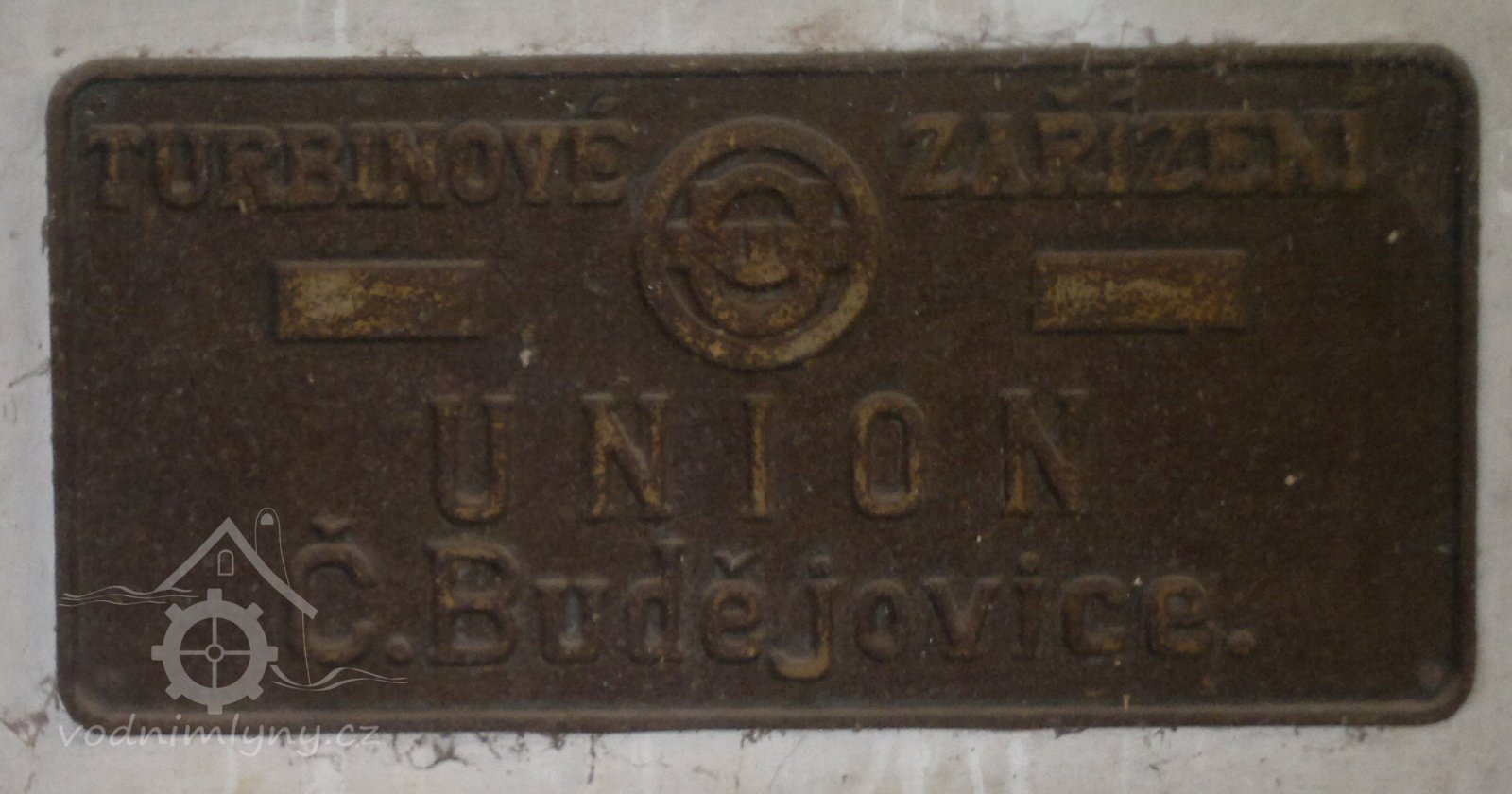 PopisPůvodně několik celodřevěných kol na vrchní vodu, později jen jedno, později kolo pracuje souběžně s turbinou a nakonec demontováno a pracuje jen turbina. Byl připraven projekt a následně upravena kašna pro druhou turbinu, avšak k realizaci již nedošlo. V současné době není turbina v provozu ale je z převážné části dochována. Jedná se o výrobek Českobudějovické firmy Union z konce 30. let 20. stol. Sloužila k pohonu mlýna a výrobě elektrické energie. Typ: Francisova kašnová turbina horizontální, s tzv. mokrým kolenem (ssavkou).