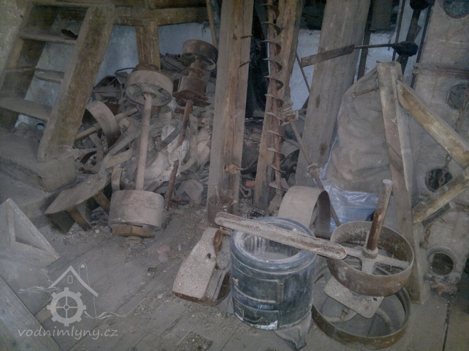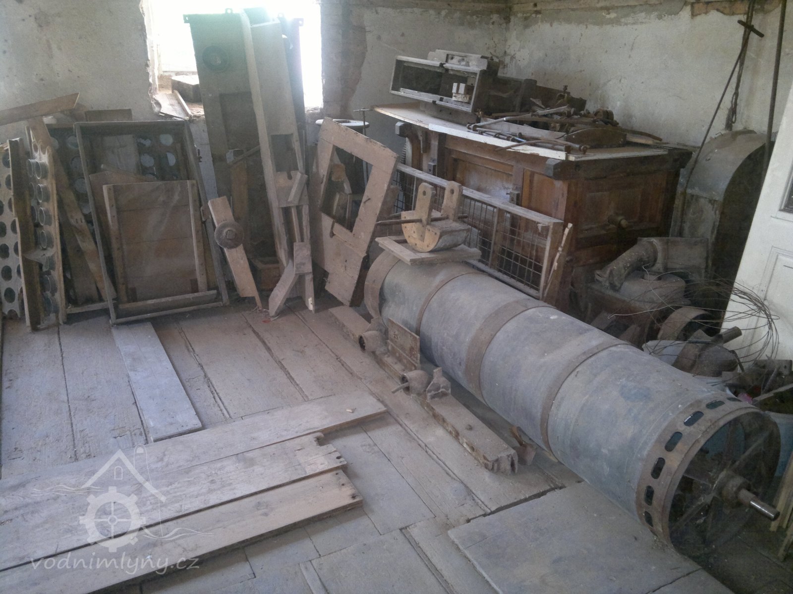 stroje mlýna: tj vysévače, kapsové výtahy, filtry, reforma, paleční kolo ad.