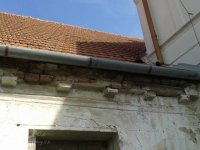 Zcela vlevo (na jihovýchodě) je jedno zazděné pravoúhlé okno, jež nebylo později nahrazeno oknem větším. Jeho rozměry ale nejsou totožné s původní velikostí větších oken popsaných výše. Kolem otvoru lze pozorovat fragmenty výzdoby ryté v omítce, jejíž podoba je srovnatelná s předchozí. Dobře je zde patrná rytá podokenní římsa, která je u předchozích oken jen tušená. V posledním podlaží je vlevo úzké stojatě obdélné okno s šestitabulkovou dřevěnou výplní. Kolem okna je cihlové zdivo, omítky s výzdobou nejsou patrné. Dále vlevo směrem na jihovýchod lze pozorovat dvě zazděná nebo pouze rytými linkami vymezená okna primárně slepá. V pekované omítce jsou linie oddělující plochy nátěrů s nepatrně odlišným odstínem. Pokud linie vymezují zazděná okna, musela by být poměrně malých rozměrů.