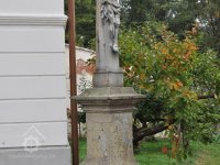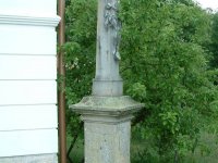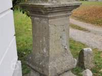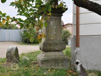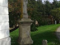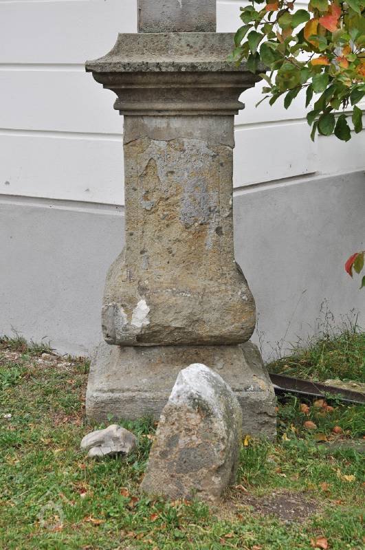 Na čtvercové základně čtyřboký sokl, ve spodní části volutově rozšířený. Na přední straně rytý rám kasulového tvaru.