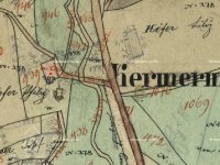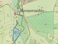 Kermer Mühle zanikl do roku 1953, kdy je z leteckého snímku patrné pouze obvodové zdivo mlýna.