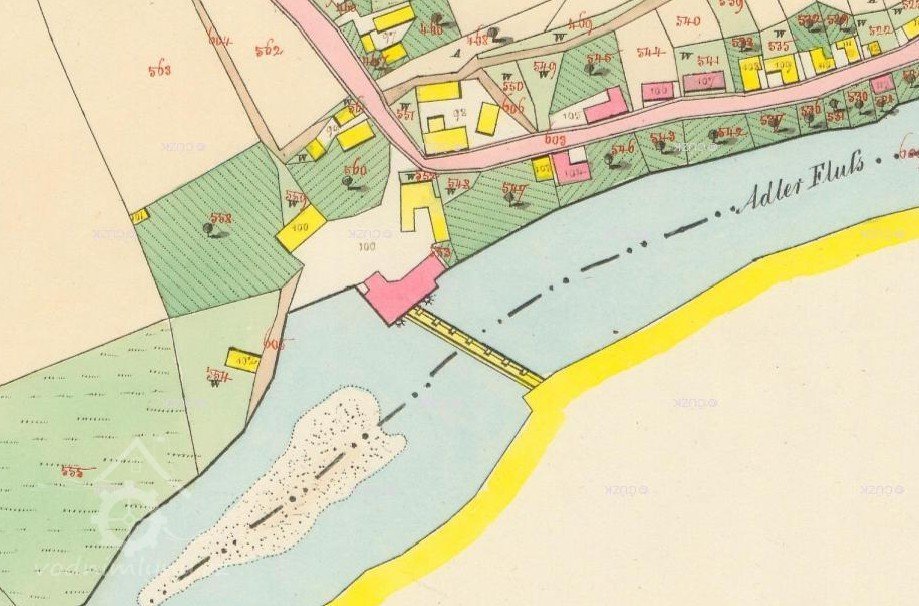 1869 majitel dašického panství, svob. pán Liebig nechal hned u mlýna postavit dřevěný most přes Orlici