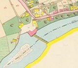 Dřevěný most postaven 1869, 1875 stržen povodní, znovu postaven, 1890 znovu stržen