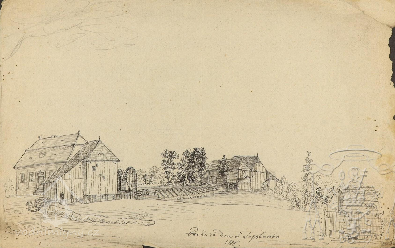 1803 František Král, bylo zjištěno, že vystavěného jím nového složení, jahelky, krupníku a zahradu nad mlýnem neprávem užívá. Užívání mu však bylo ponecháno, když se novou smlouvou z roku 1804 uvolil, že bude platiti navíc roční činže 2 zl. 20 kr. a za zahradu zřízenou na pustém místě rovněž 2 zl. 20 kr. Za zahradu musel navíc jednorázově  zaplatit 112 zl. 30 kr.