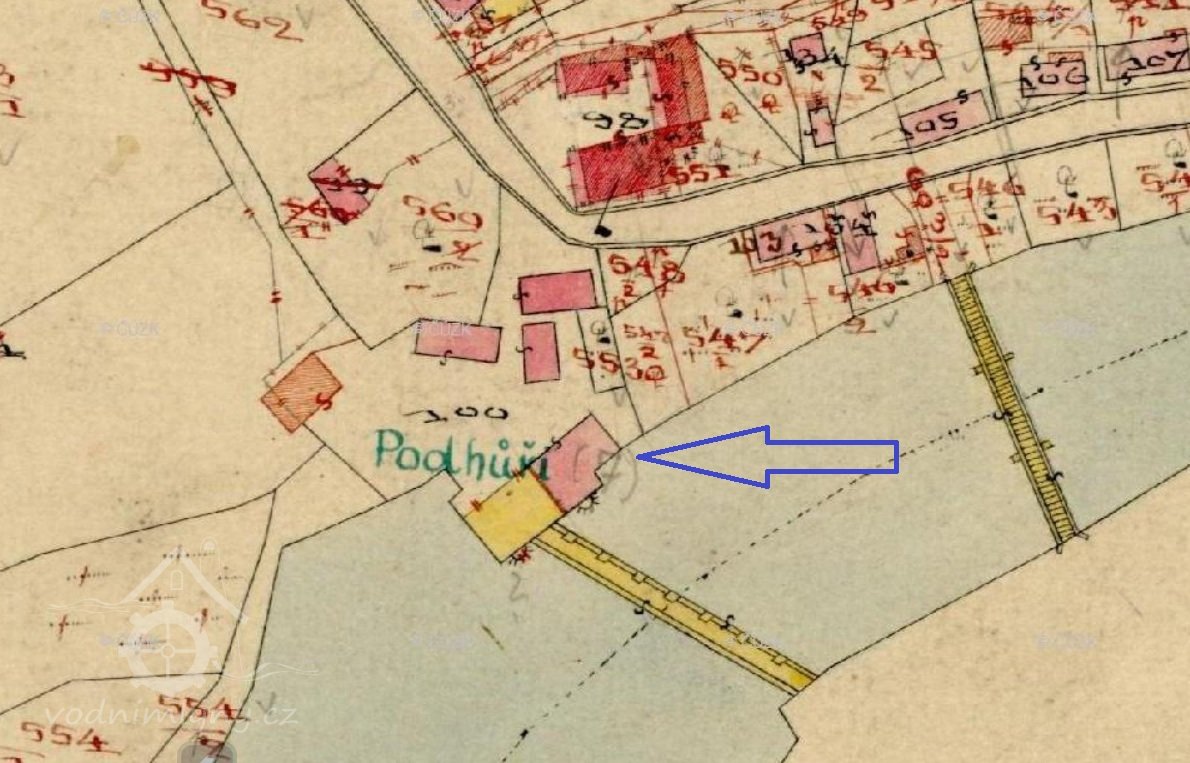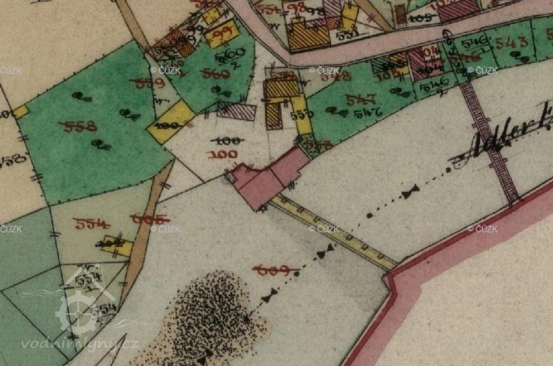 V r. 1930 zde bylo 1 kolo na spodní vodu, průtok 2,7 m3/s, spád 1,4 m, výkon 20 k.