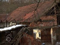 v hospodářských budovách ustájen mladý dobytek, elektrárna zrušena, turbína vážně poškozena, částečně i s náhonem zasypána