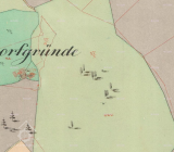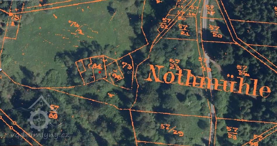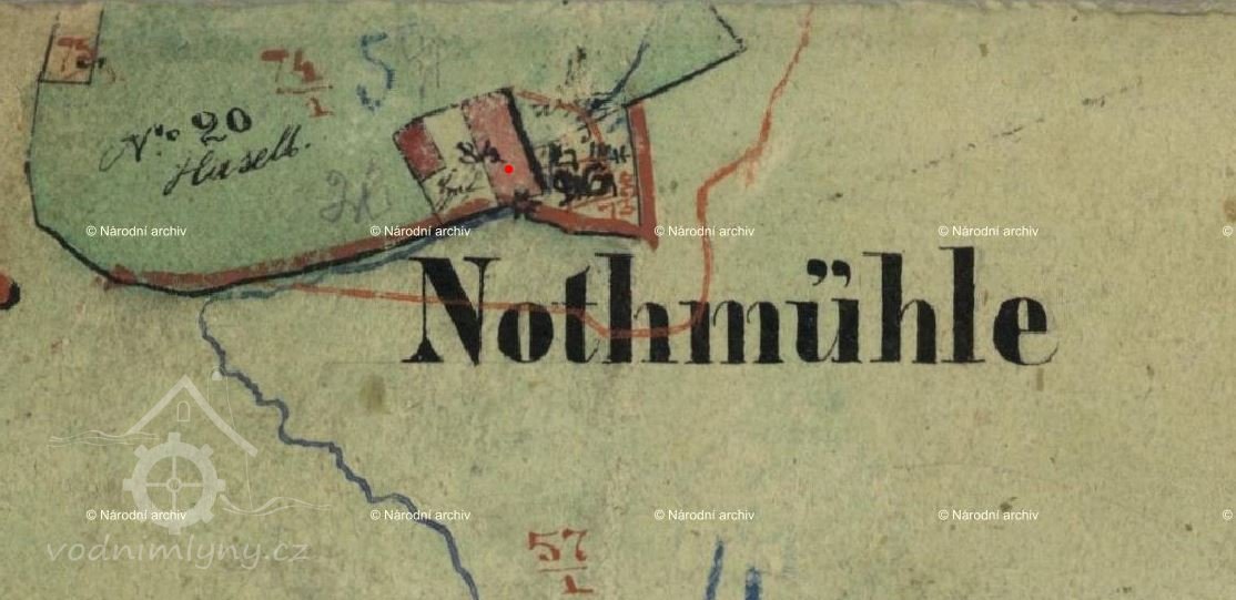 Mlýn je pouze dodatečně vkreslen do map Stabilního katastru, vznikl tak až po roce 1838. (LR)