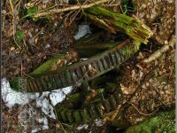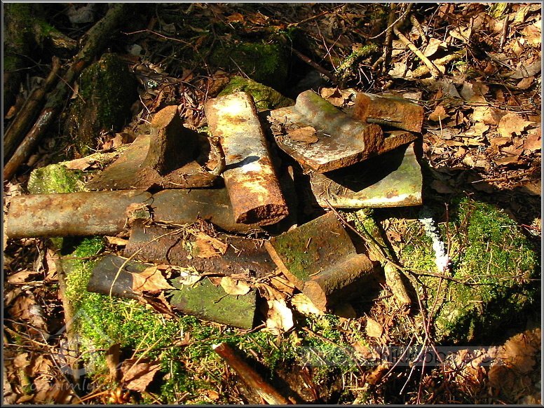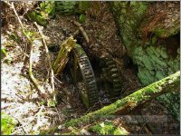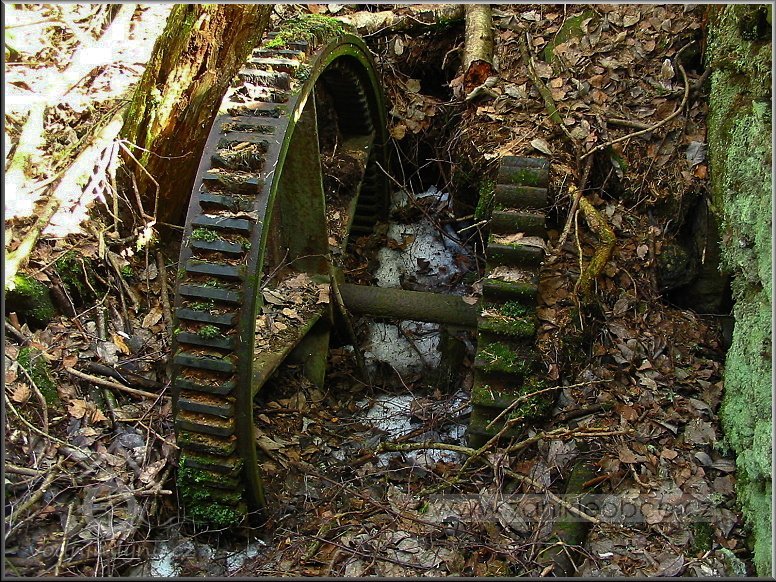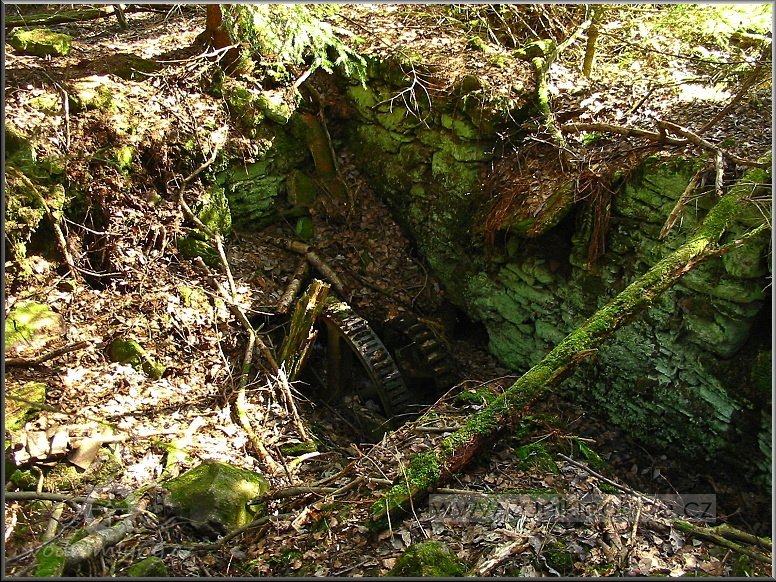 Hřídele, které jsou na fotkách, byly v létě r. 2012 nepochopitelně odcizeny a otázkou zůstává, jak a kým, navíc sem prakticky žádná cesta nevede, i když náznak staré cesty místy je.