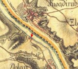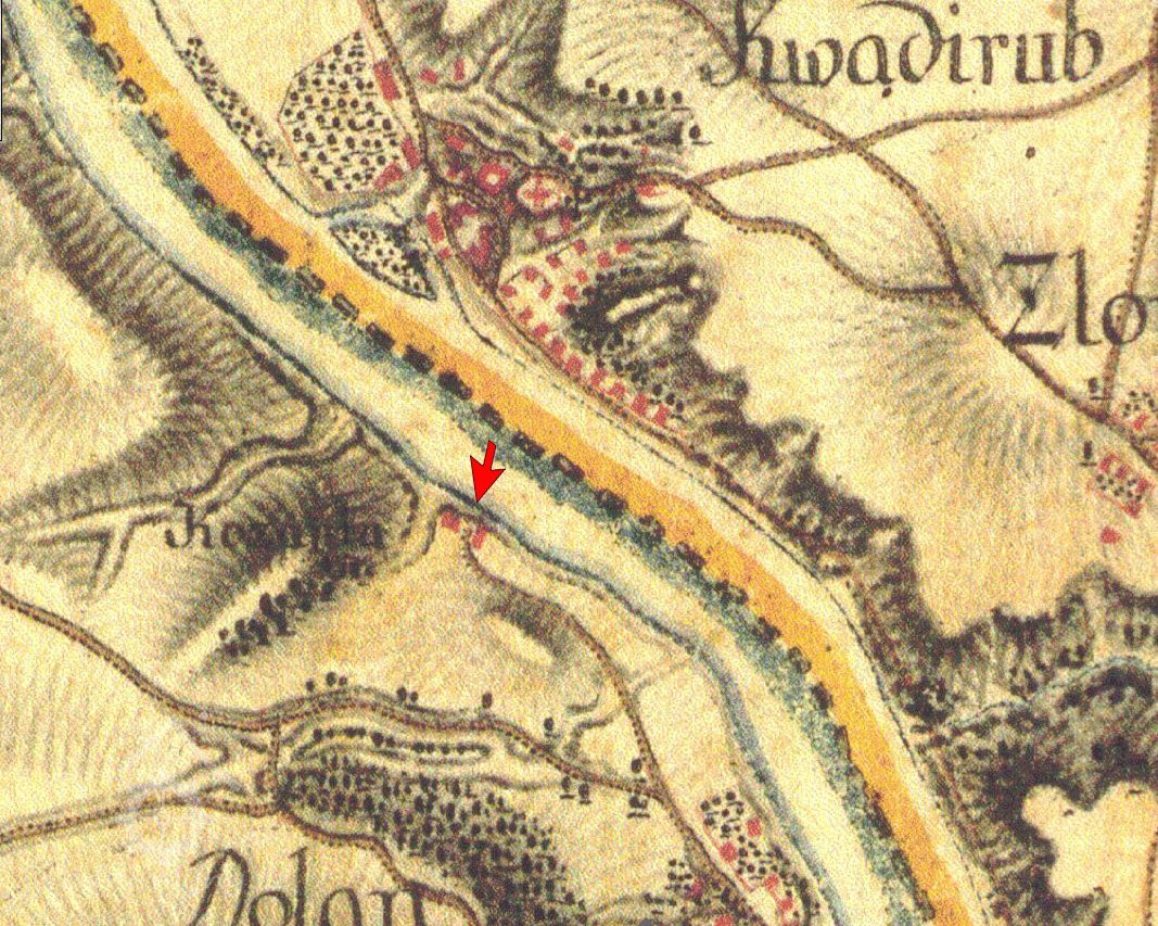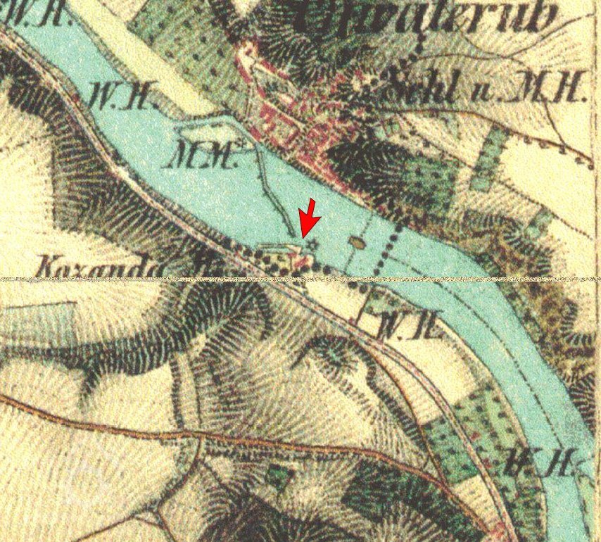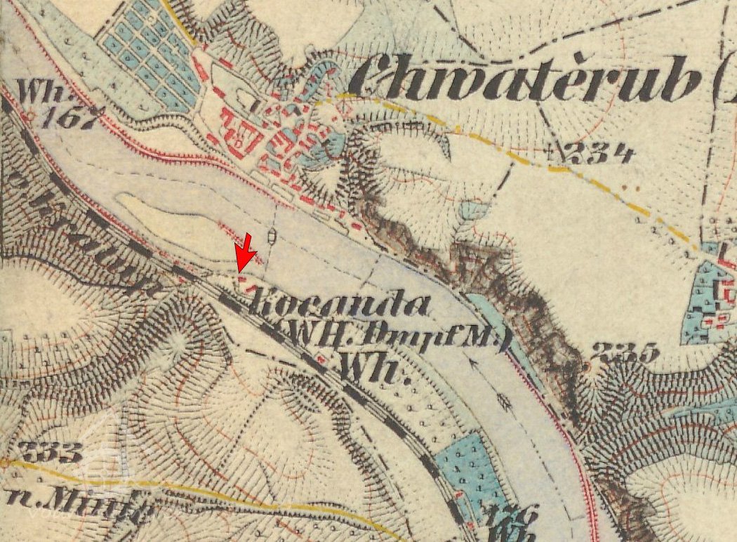 Na břehu slepého ramena řeky, cca 650m SZ od železniční zastávky.