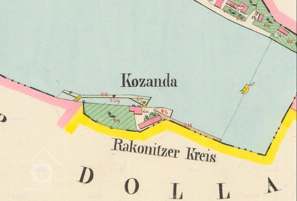 mlýnice nedochována, dle mapových podkladů lze rekonstruovat dvě vodní kola na spodní vodu