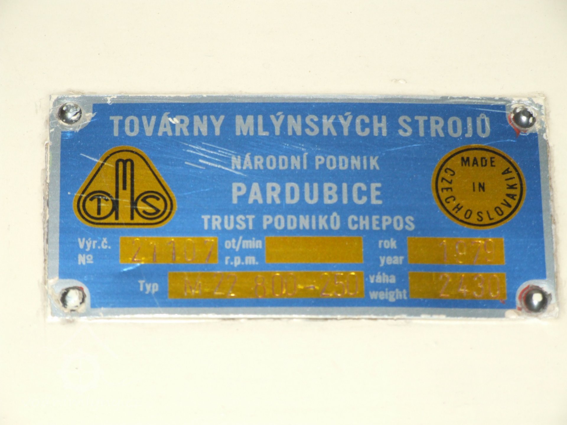 VýrobceTovárna mlýnských strojů a stavba mlýnů, dříve Prokop, národní podnik Pardubice