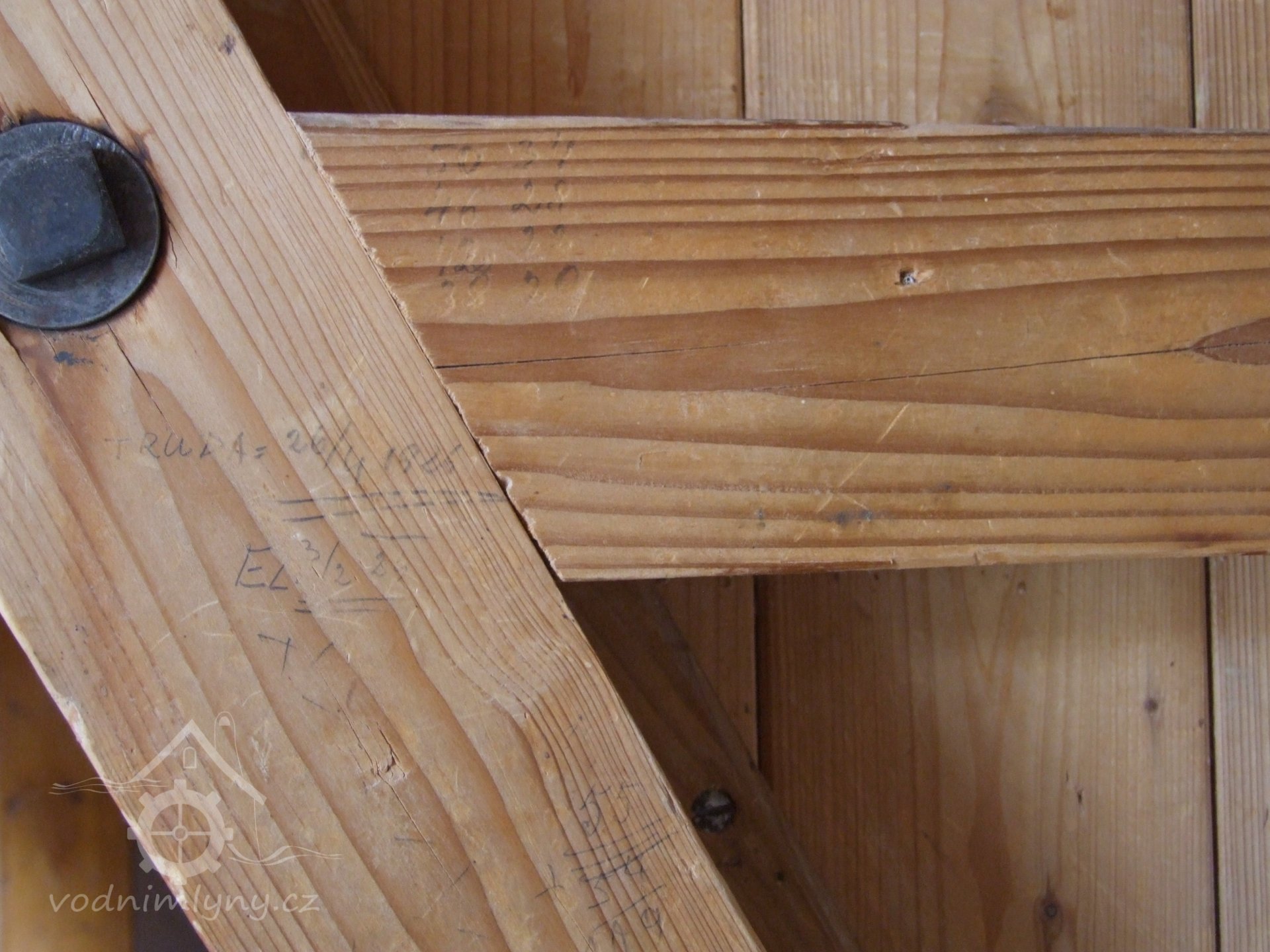 Popis1930: 1 kolo na spodní vodu, hltnost 2,22 m3/s, spád 1,5 m, výkon 13 HP