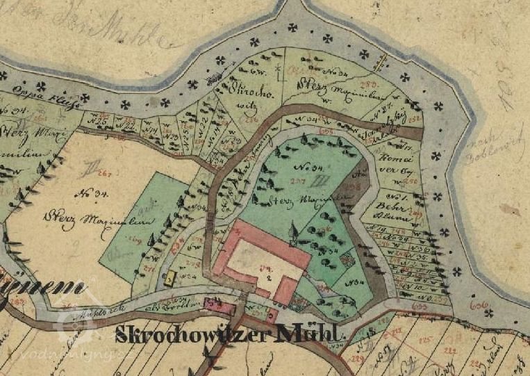 1930 - majitelem mlýna ve Skrochovicích je Rudolf Sterz (č.p. 34), kolo na horní vodu s výkonem10,36 kW