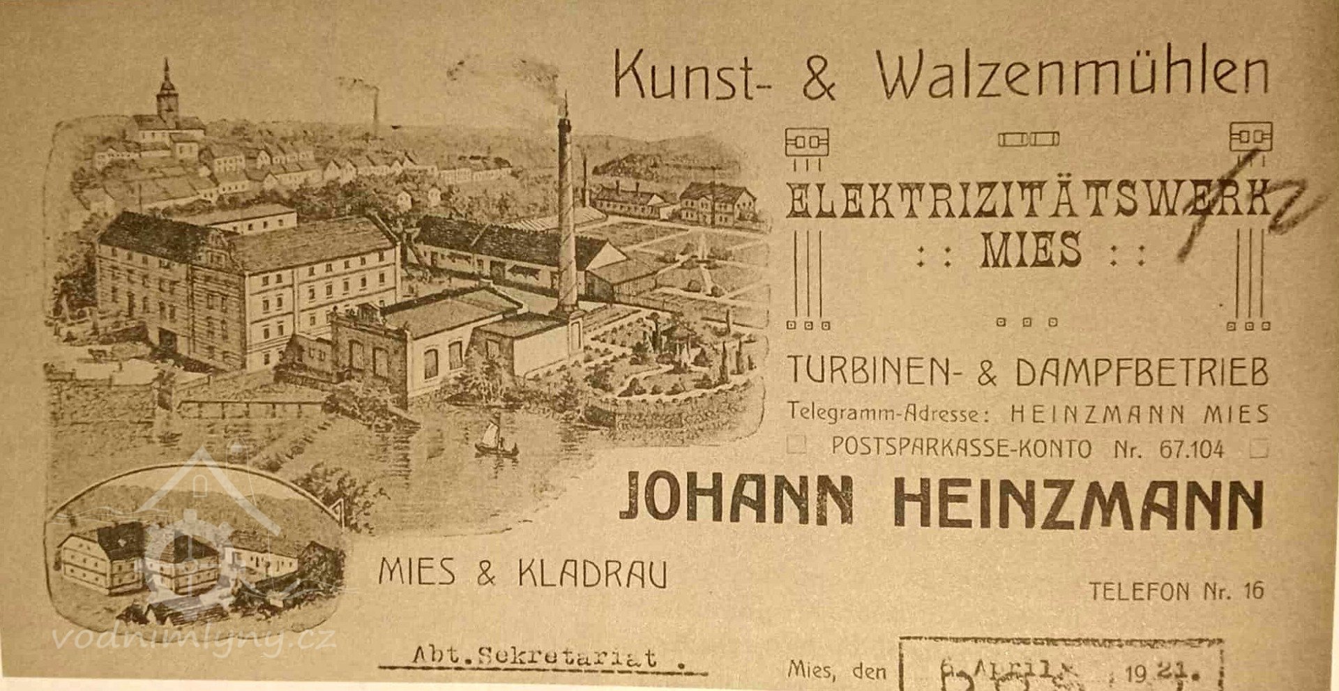 V roce 1930 byl majitelem mlýna a elektrárny Jan Heinzmann.
