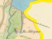 1891 normován, pevný bod na kamenném sloupci osazeném ve vzdálenosti 8,4 m od táhla mlýnského stavítka