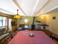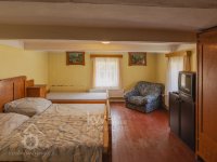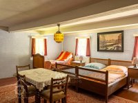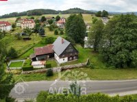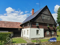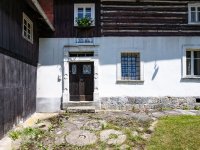 Dům je do tvaru L a je postaven z pískovce + roubení.