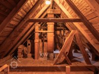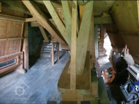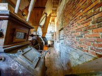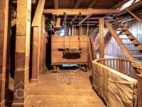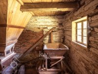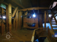 Kamenné složení se staršími, řemeslně vyvedenými luby, pohon z podkolí od litinové řemenice s polozkříženým řemenovým převodem přes rolny.