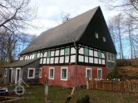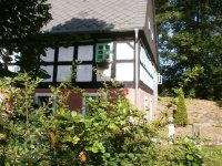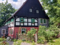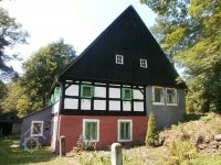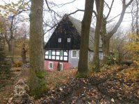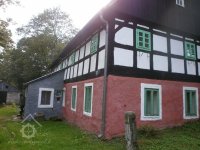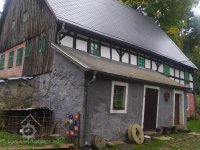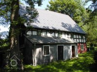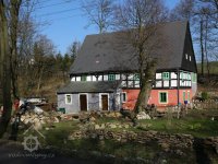 Západní strana mlýna se zbytky lednice, 12.6.2022, © Tomáš Efler, (Prvky na obrázku: okno, skládaný bedněný štít)