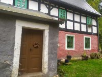 Vstup do kamenného sklepa, jeden z nejstarších prvků mlýna, 20.07.2017, © Renata Šoltová, (Prvky na obrázku: kamenické prvky barokní a mladší)