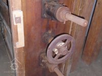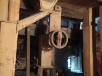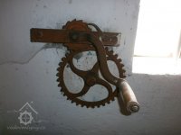 Klika na ovládání přítoku vody na vantroky, 15. 9. 2016, © Renata Šoltová, (Prvky na obrázku: transmise, řemenice, převody)