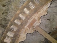 Paleční kolo na hřídeli, část mlýnice, 30. 10. 2016, © Renata Šoltová, (Prvky na obrázku: profil zhlaví mlýnské hranice)
