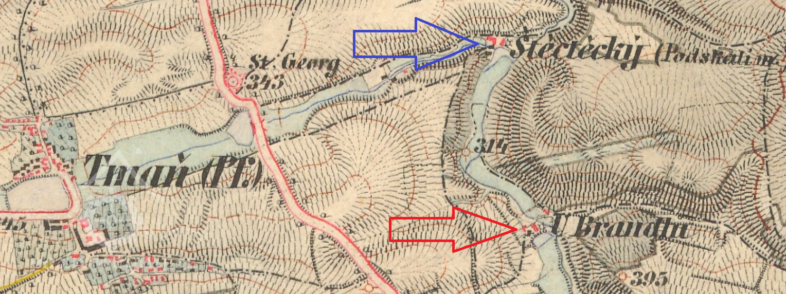 Horní mlýn v Tmani, jak napovídá název U Hadrů, mohla zde být i papírna. Mlýn byl zbořen při rozšiřování vápenky u lomu Čertovy schody.