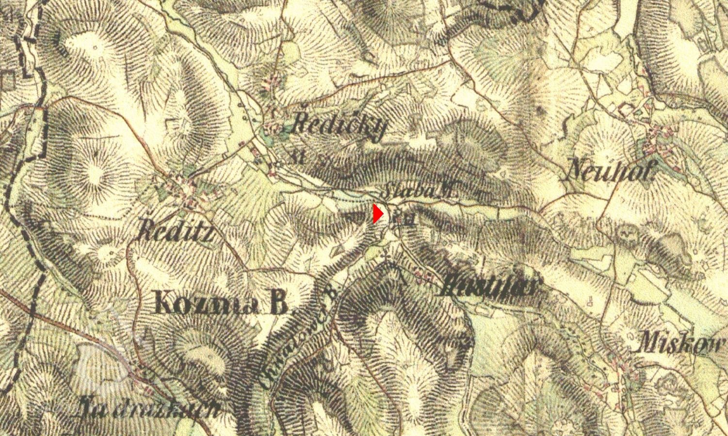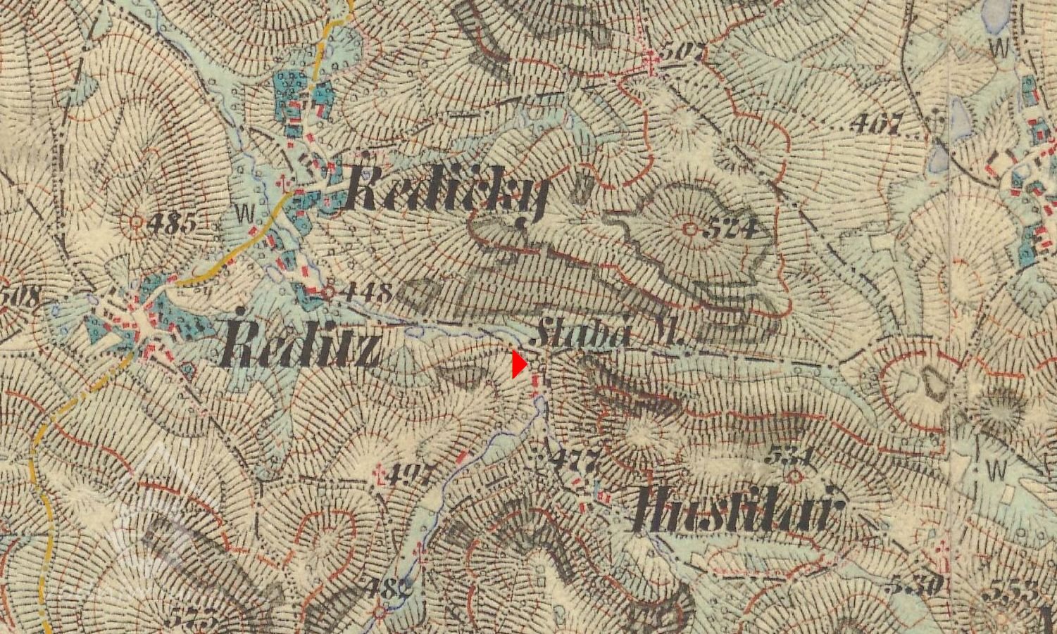 Severozápadně od obce Huštilář.