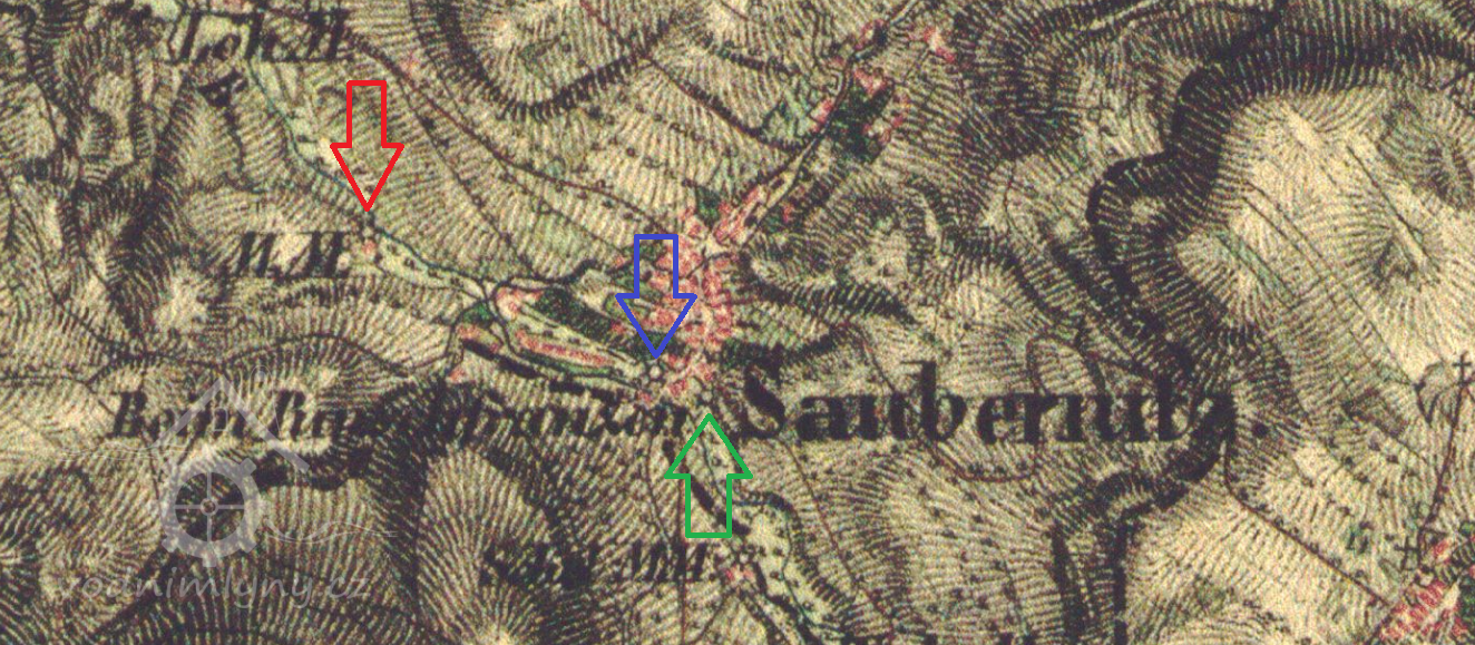 Menší mlýn přímo v centru Zubrnic pod kostelem