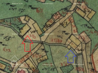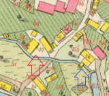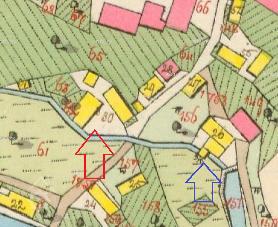 Podlouhlé stavení, kolmé na potok