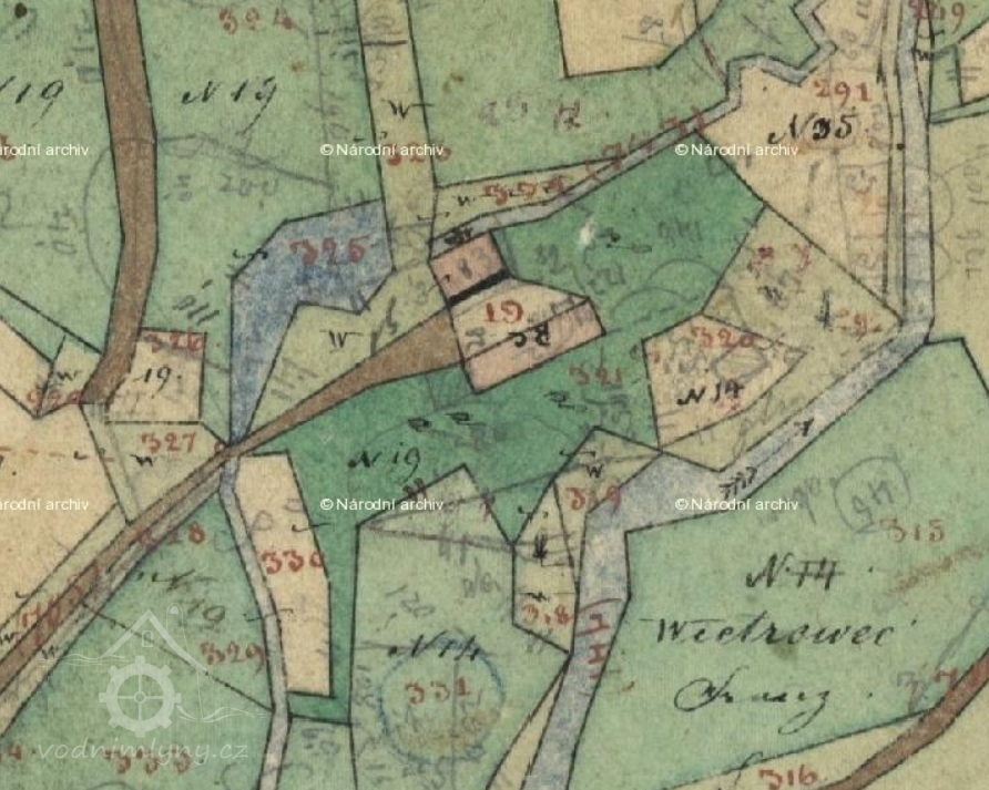 Popis1930: 1 kolo na svrchní vodu, hltnost 0,08 m3/s, spád 5,14 m, výkon 3,56 HP