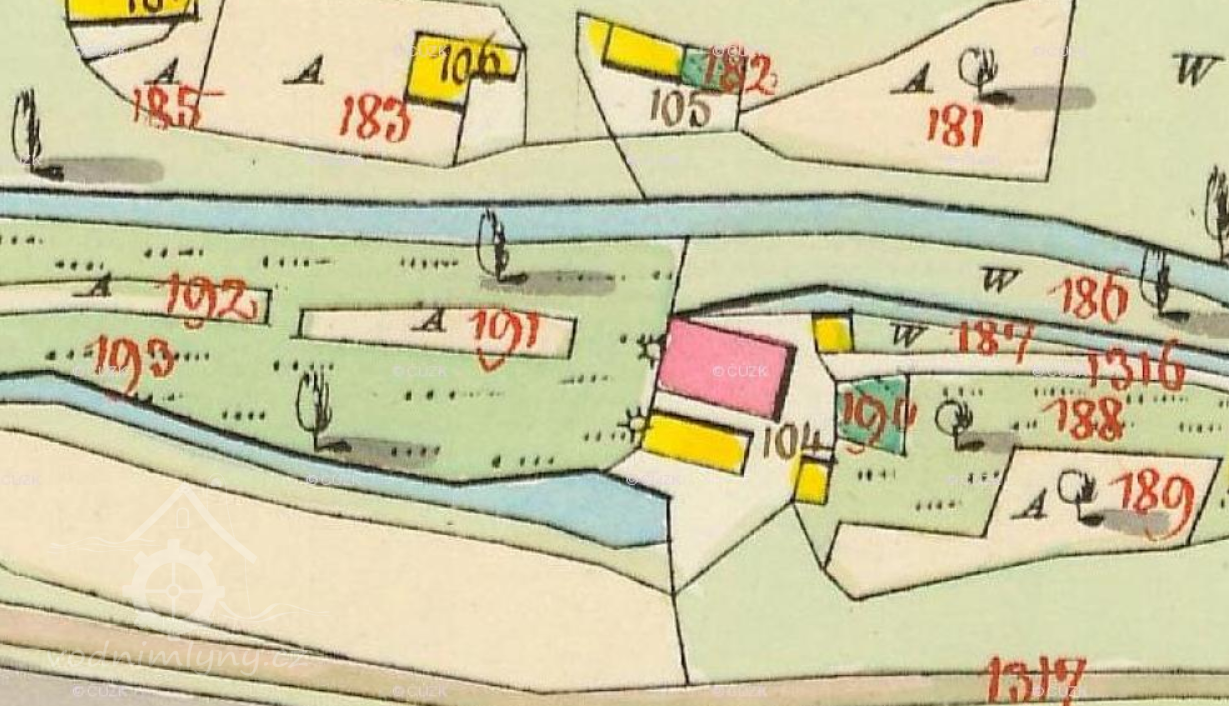 Popis1930: 1 kolo na svrchní vodu, hltnost 0,11 m3/s, spád 5,2 m, výkon 4,95 HP