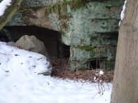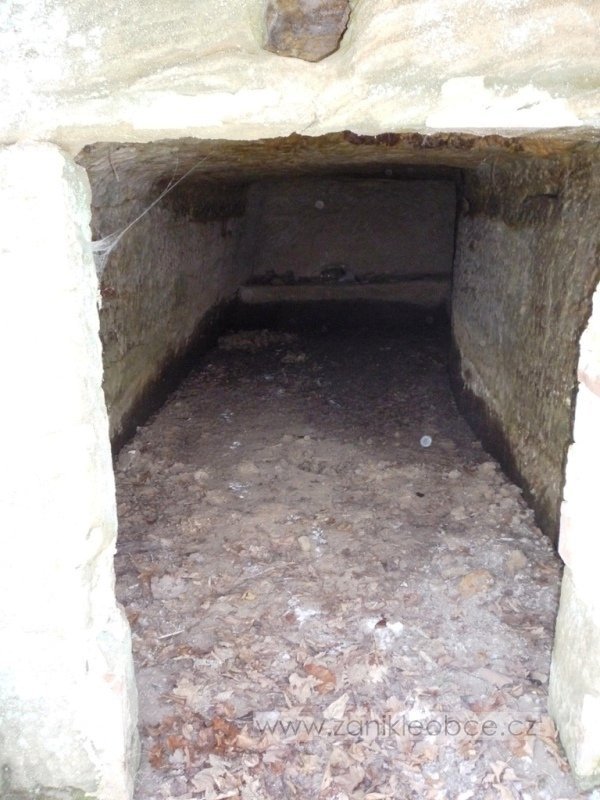 do skalního masivu pod zaniklým mlýnem jsou zahloubeny prostory využívané patrně jako sklep, přístupné pravoúhle ukončeným vstupem. Na skalní stěně vlevo od čela lednice se nachází datace "1839". V kolmo navazující lomové stěně je zahloubena komora s odkládací lavicí u zadní stěny. Nad jejím vstupem je patrná řada kapes pro stropní trámy zaniklého objektu, který přiléhal k masivu. Nad pravým horním okrajem vstupu je vysekána datace "1850". Výše je zahloubena ještě drobná prostora, která mohla být přístupná pouze z podkroví zaniklé stavby. další skalní prostory hospodářského zázemí jsou zachovány ve dvou kolmo na sebe umístěných stěnách jv od mlýna. Na skalní místnosti dle otisku ve stěnách opět navazovaly zaniklé stavby. Od mlýna nejvzdálenější část byla dle kamenných žlabů využitá jako chlévy. dále k jv stála ještě stodola, po které však nejsou žádné stopy v terénu.