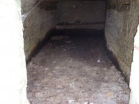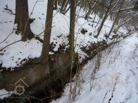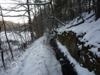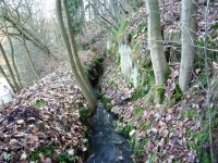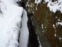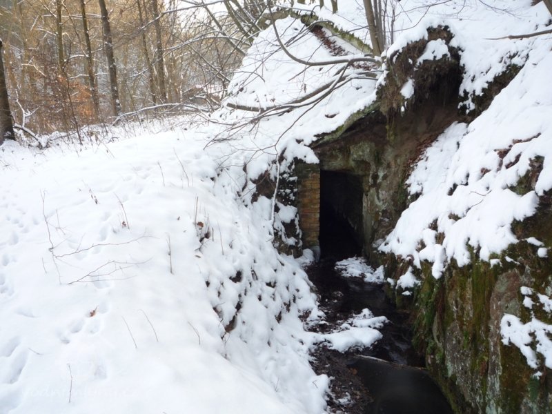 Náhon původně pokračoval ze štoly rovně, což je patrné na zazdívce otvoru v pravém břehu. Na zazděný otvor navazuje zasypaný prostor přisekané skalní lavice, která tvořila vantroky, a k ní přiléhá výrazně zahloubená lednice o šířce kol. 2 m. Její zahloubení není zřetelné v celém rozsahu kvůli navážce.