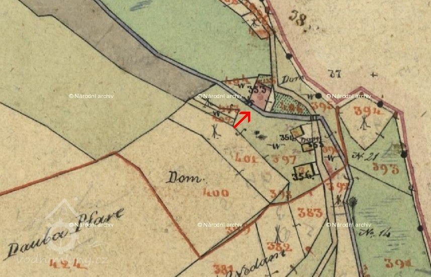 1714 (Tereziánský katastr, dominikální fase) mlýn Mlýnek s jedním kolem na nestálé vodě