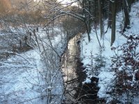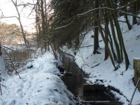 Původní odtokový kanál z lednice, skrytý pod terénem vedl pod dnešní cestu a dále po pozemku p.p.č. 406 zpět do potoka. Vyústění je ještě dnes patrné zamokřenou prohlubní na pravém břehu Liběchovky.