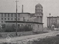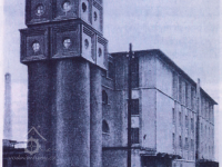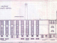 mlýn napojen na železniční vlečku, mezi mlýnem a pekárnou transportér pro převoz mouky
