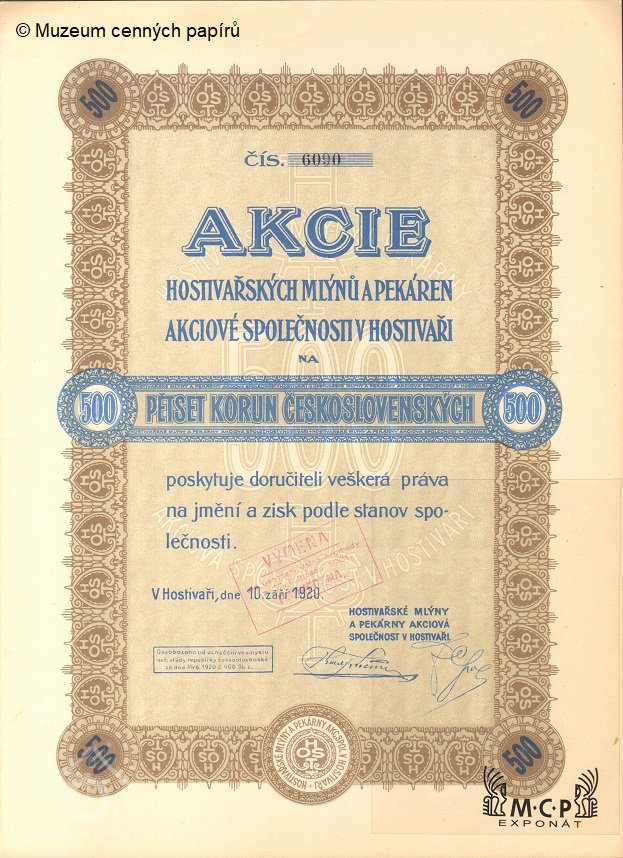 21.1.1920 v pražské Obchodní a živnostenské komoře proběhla ustavující valná hromada společnosti Hostivařské mlýny a pekárny. 22 akcionářů zastupuje 3 milionový kapitál, jsou přijaty stanovy a zvolena správní rada - předseda majitel realit Jan Kolátor, místopředseda mlynář Karel Krečmer, členové průmyslník Jaromír Mencl, rada pražského nejvyššího kontrolního úřadu Ferdinand Menger, velkoobchodník František Groh. V dozorčí radě cukrář z Vodičkovy ul. František Myšák. Akciový kapitál navýšen na 6 milionů.