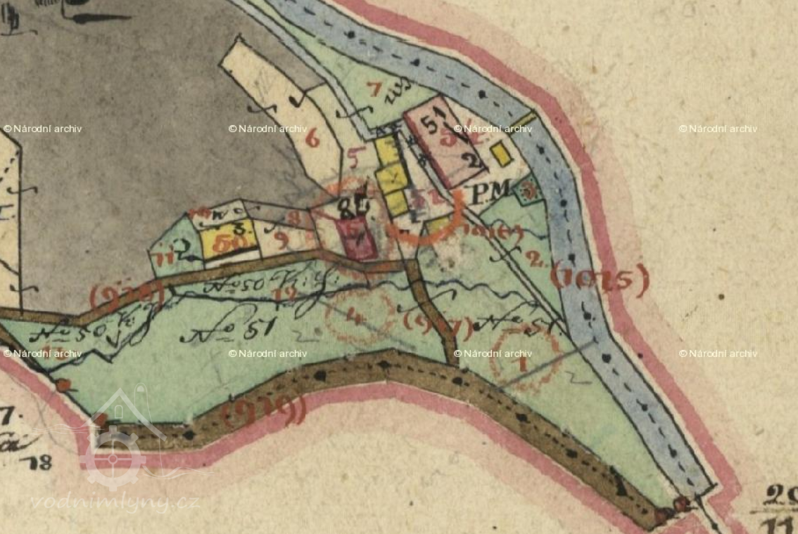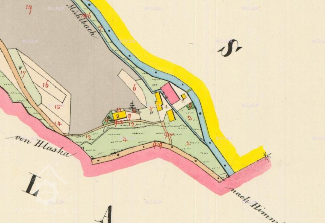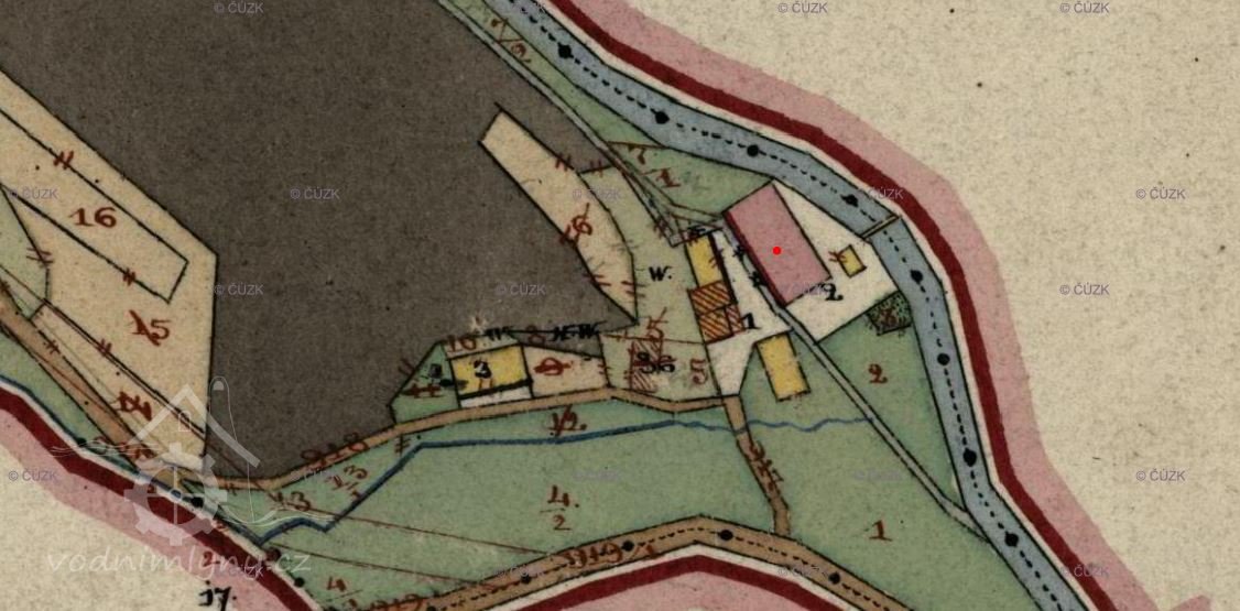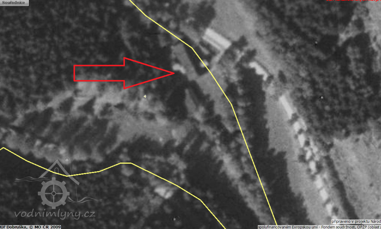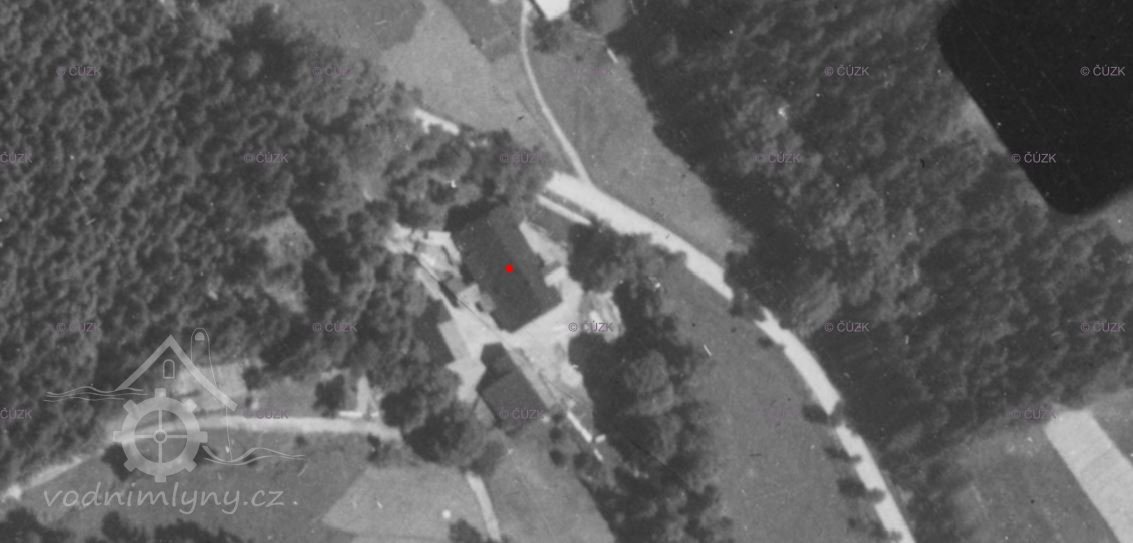 Zaniklý větší mlýn u odbočky silnice k chatě Kovárně. Dochováno rozsáhlé mlýniště, částečně zatopené vodou.