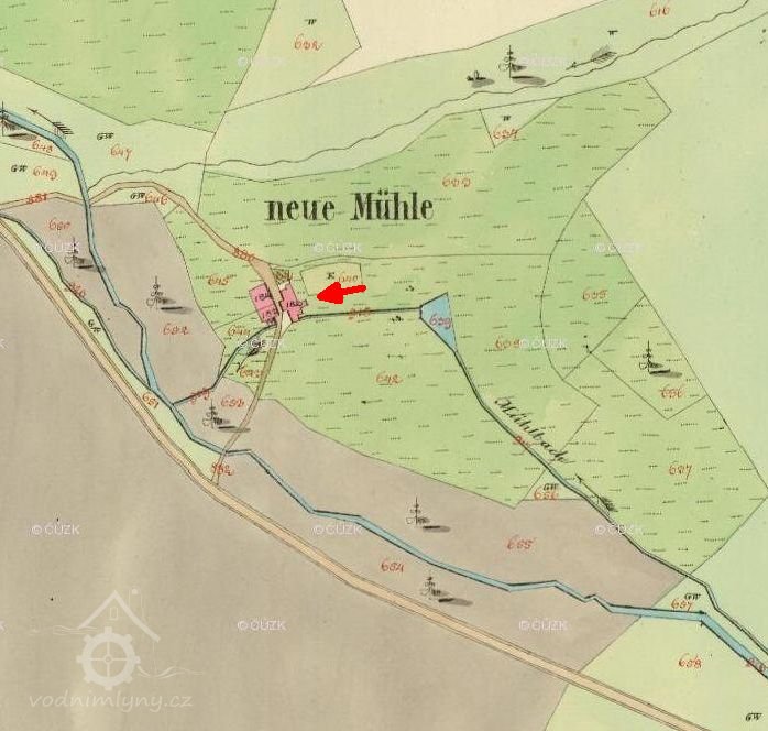 Náhon byl veden od Božidarského potoka - viz císařské povinné otisky.
