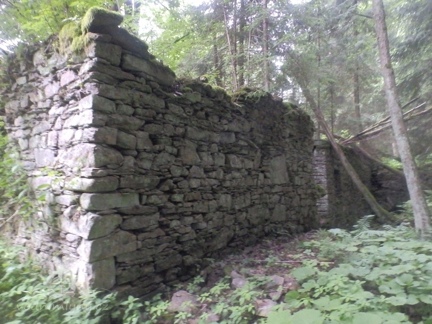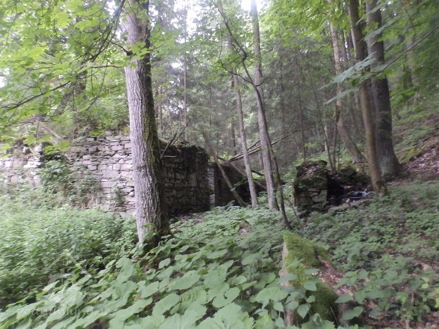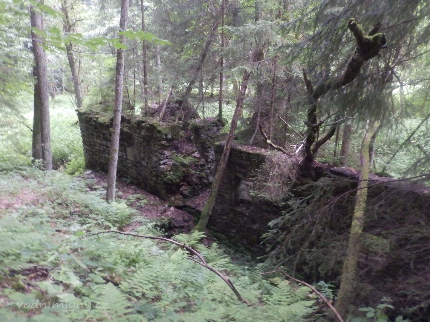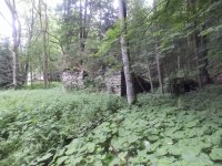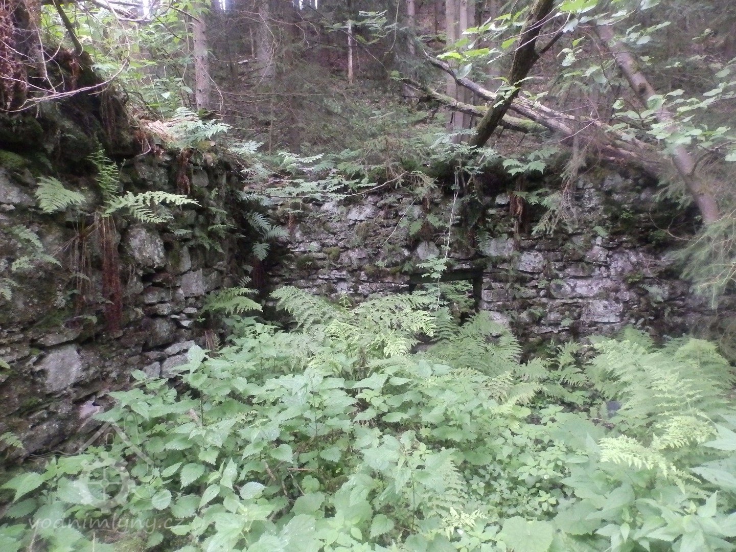 Mohutné zříceniny mlýna v Julinčině údolí, založeného 1716, náležející katastrem k Prostřední Rokytnici.