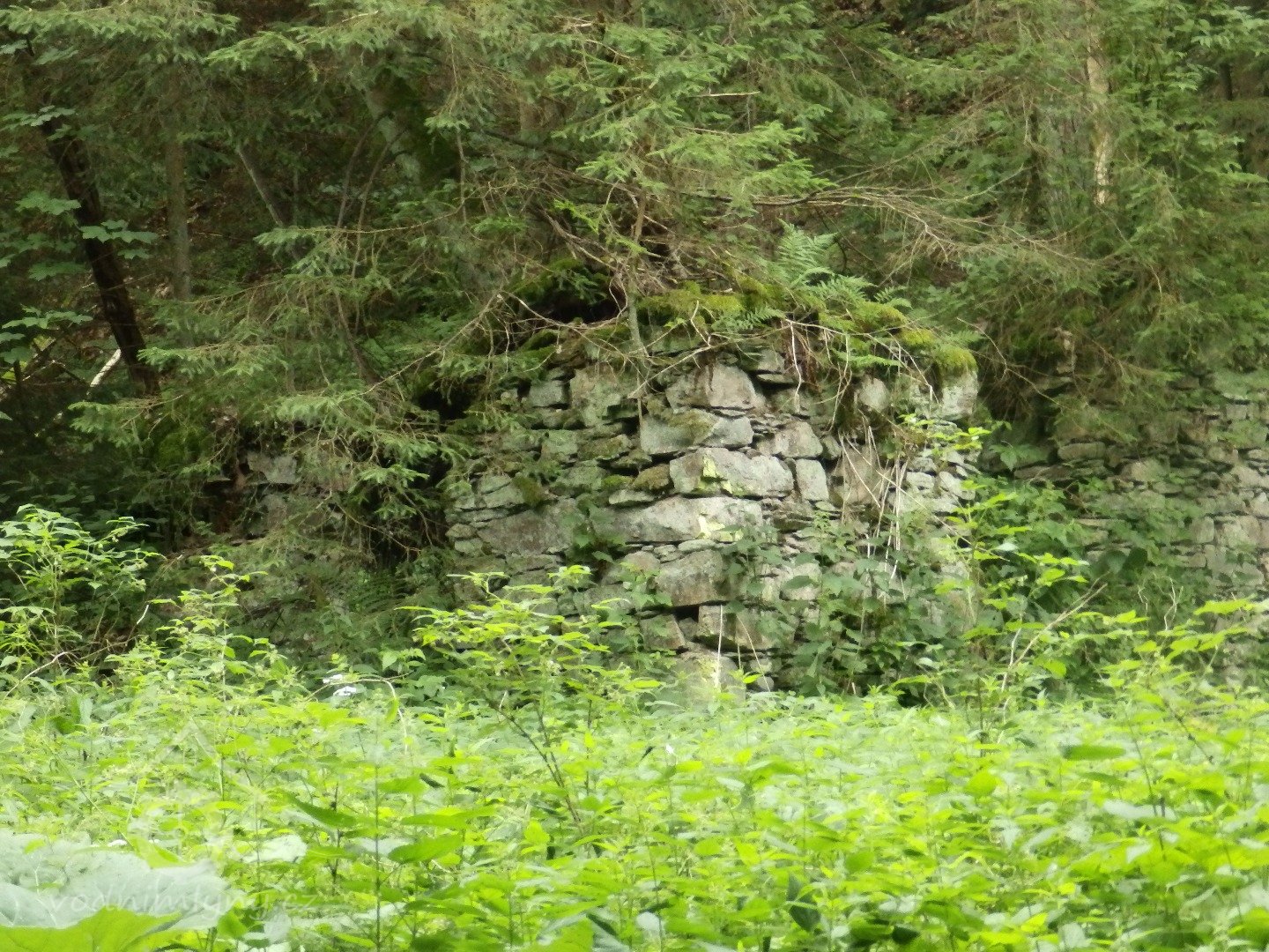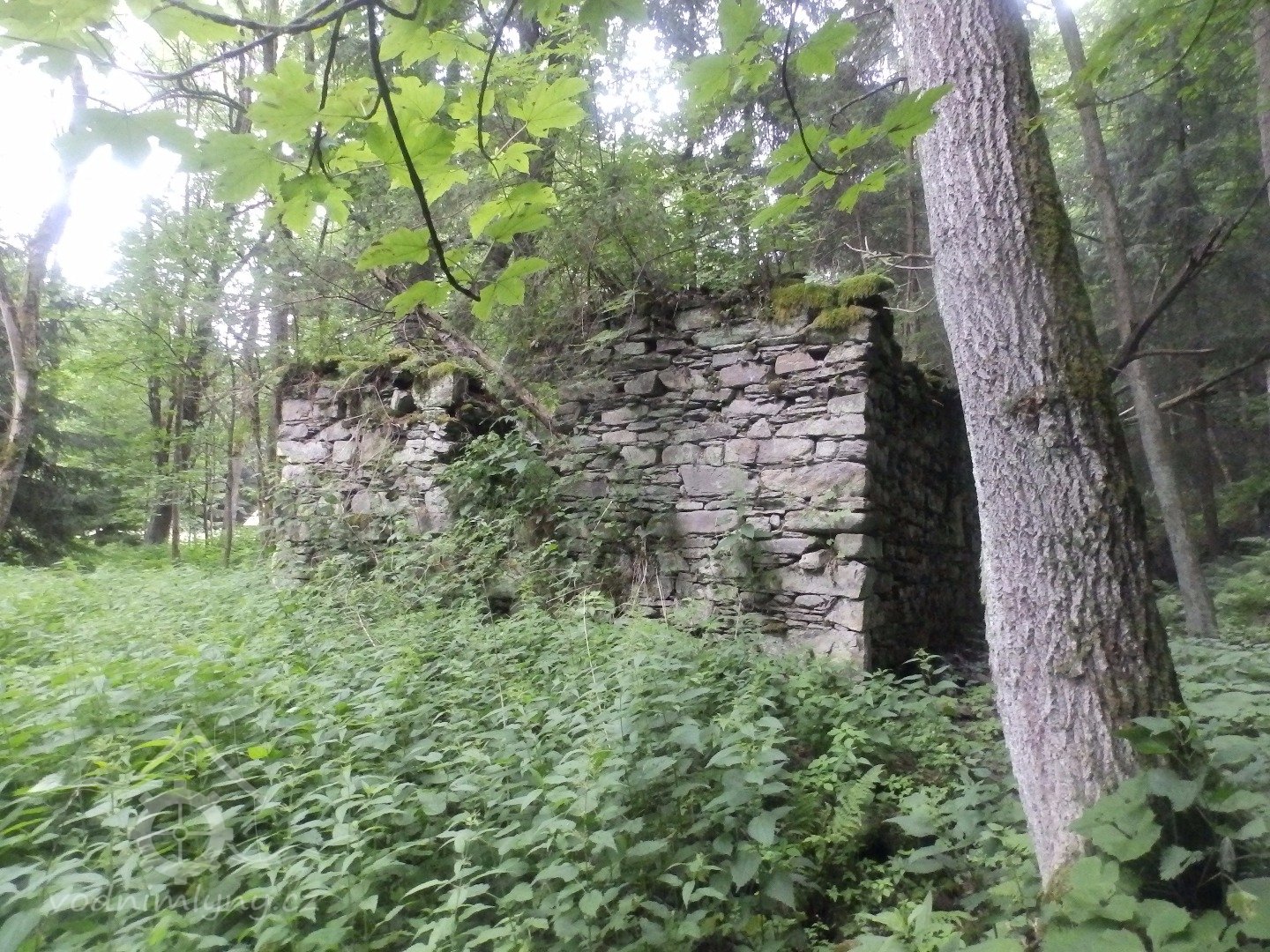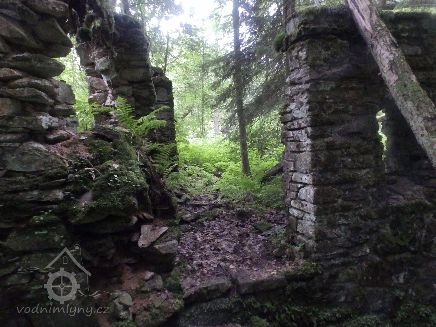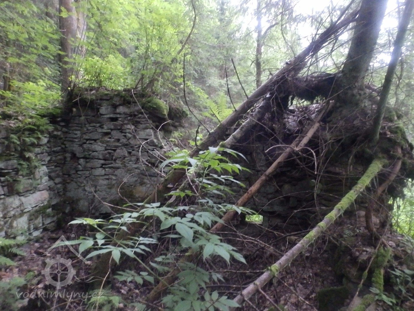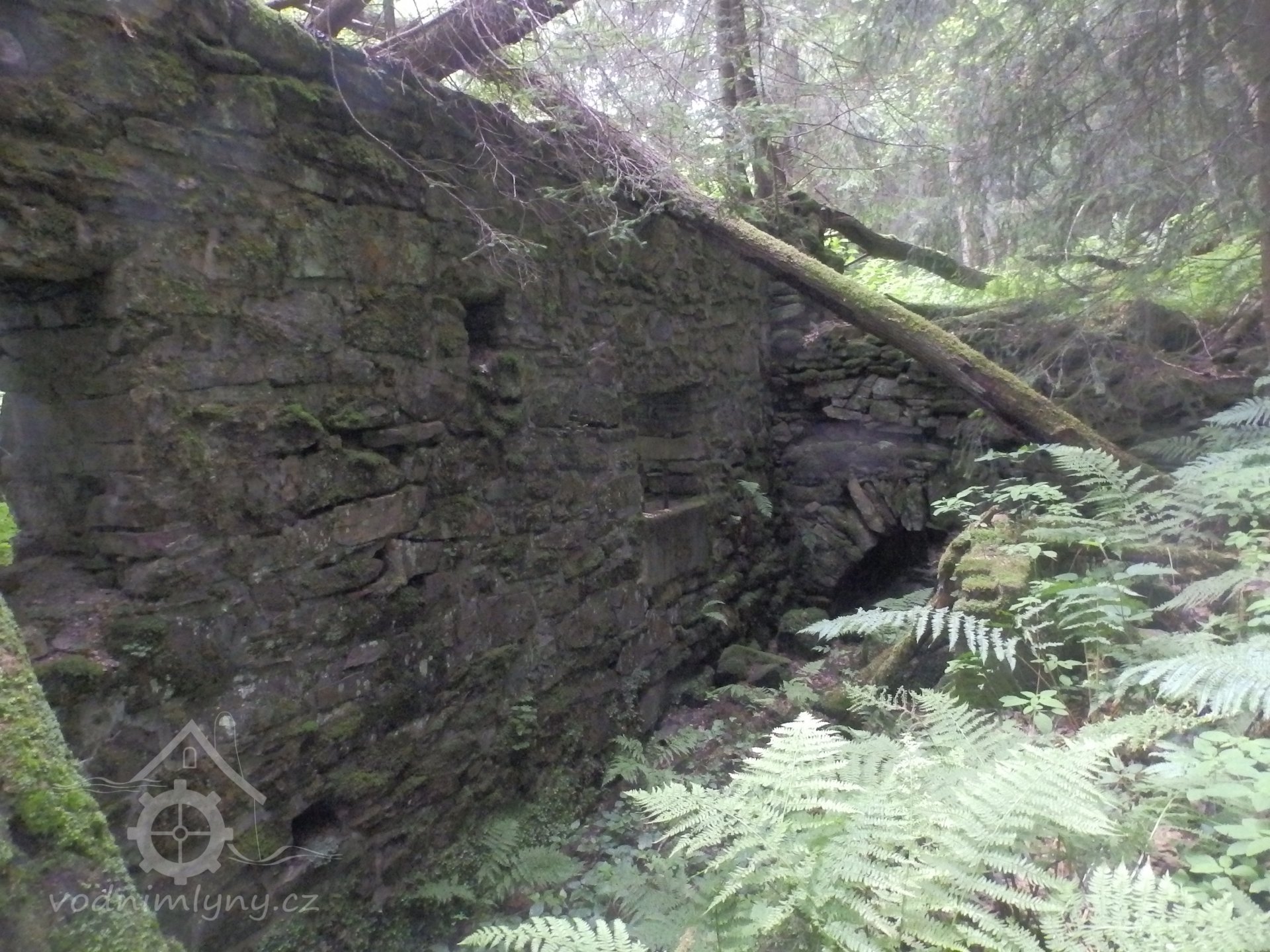 Mohutné zříceniny mlýna v Julinčině údolí, založeného 1716, náležející katastrem k Prostřední Rokytnici.