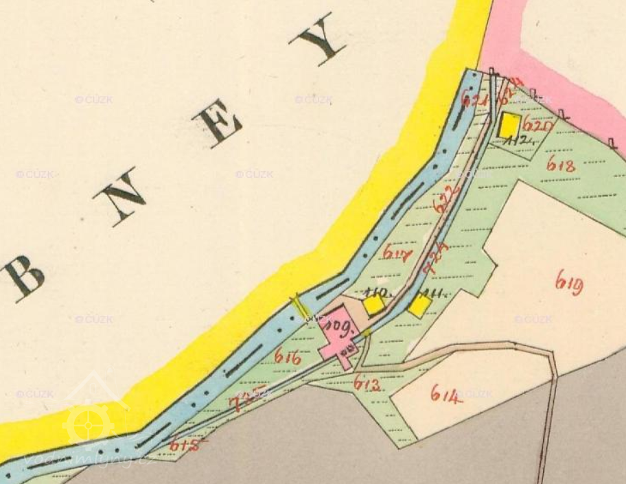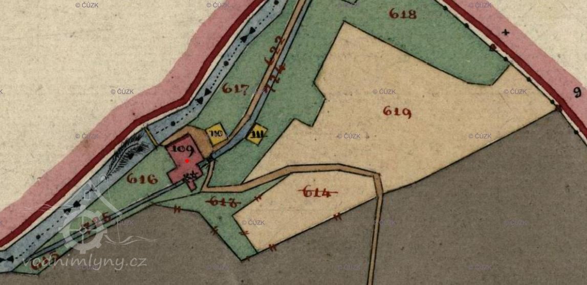 Popis1930: 1 kolo na svrchní vodu, hltnost 0,136 m/s, spád 2,9 m, výkon 3,52 HP