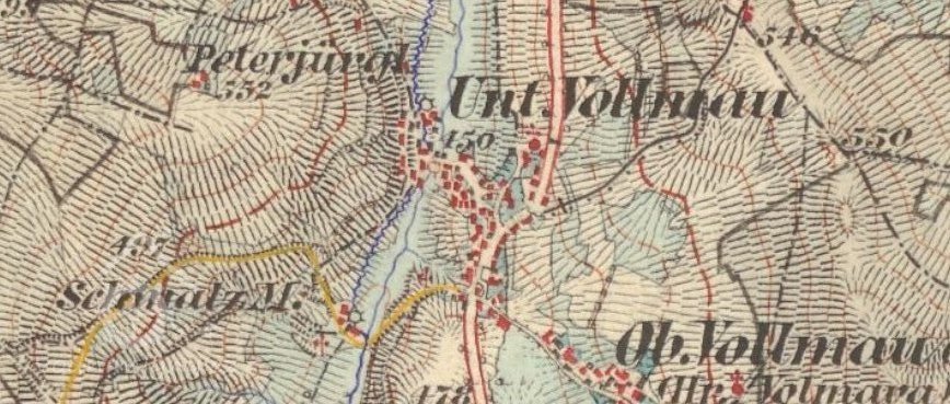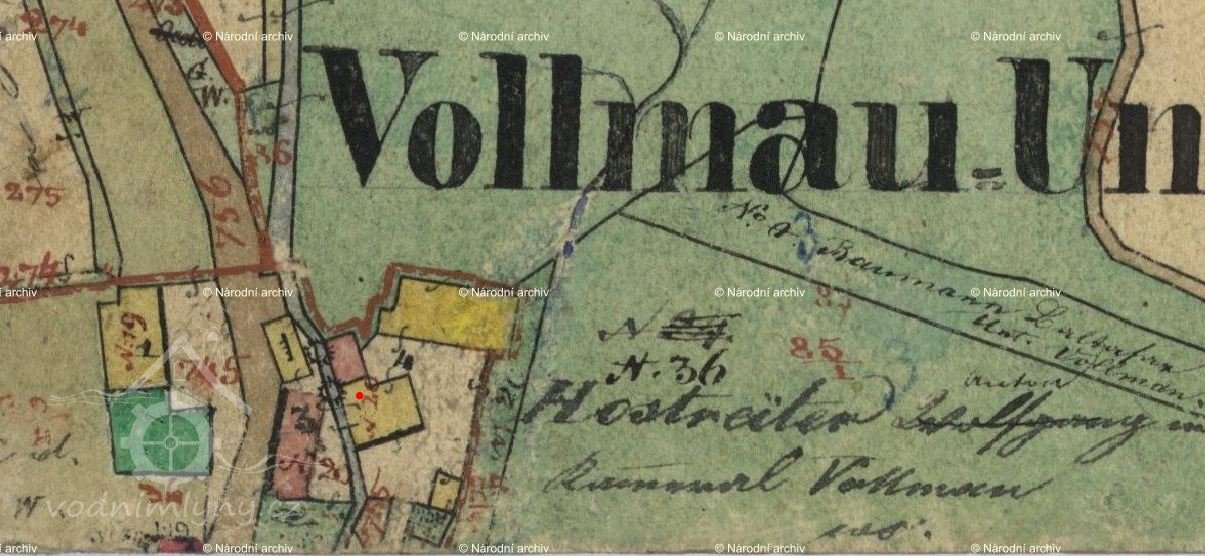 V záznamu sčítání obyvatel z roku 1869 mlynářem Franz Baumann *1823 s rodinou. Roku 1870 stále Franz Baumann, mlýn má 2 kola, u mlýna je i pila, 3 nespalné a dvě spalné budovy. Přes sčítání 1880 i v roce 1890 stejný mlynář Franz Baumann *1823 s rodinou a chasou, mj. 19 kusů dobytka, 15 ovcí.