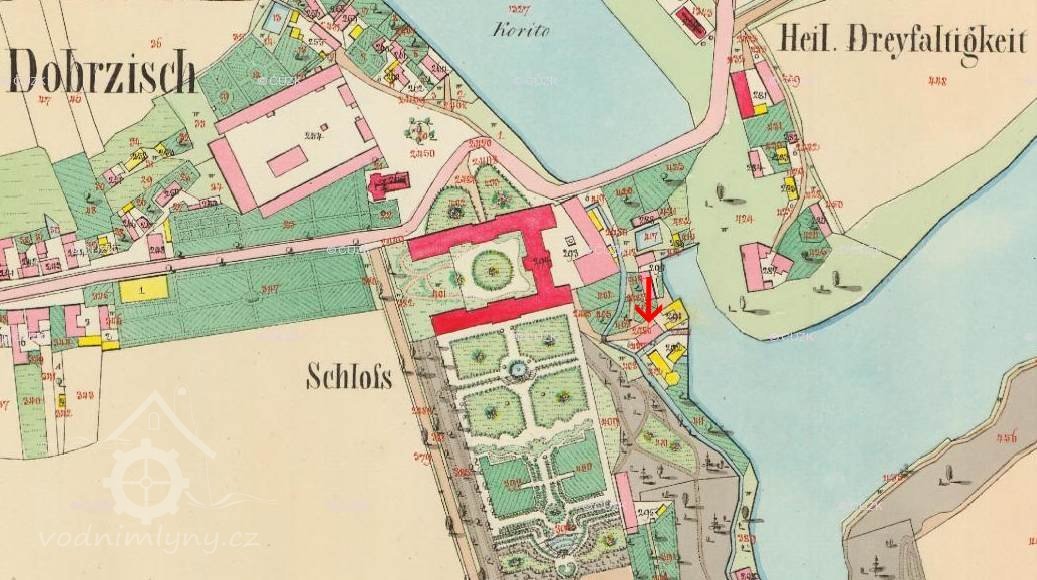 Podzámecký mlýn čp. 4 Jindřich Klouda Město Dobříš mělo původně jediný mlýn, který stál pod tvrzí a pak pod zámkem, zvaný vždy „podzámecký“. Byla k němu přiváděna voda z rybníku „Koryto“. První zmínka o tomto mlýně je již z roku 1570, kdy to býval mlýn panský čili dominikální. K mlýnu patřila pila, patrně v sousední budově. Mlýn sloužil převážně jen k potřebě panství a snad jen nejblíže usedlým poddaným. Protože v jeho sousedství stál také „císařský“ pivovar, mlel podzámecký mlýn také slad. Mlýn byl zařízen na dvě kola, ale jeho provoz často trpěl nedostatkem vody. Proto zámecký hejtman Pavel Kůrka z Korkyně, který měl v Dobříši svůj vlastní „dvoreček“, odhadoval možnost ročního „vejmelku“ nejvýše na 36 strychů obilí. „Vejmelné“ byla část výrobků získaných při mletí a odváděných panství. Roku 1584 bylo mlýnu přiděláno ještě jedno kolo, a to na návrh hejtmana Běšína, který hodlal přivést na mlýn „živý“ potok. Hejtman Běšín dbal o to, aby i některé blízké vesnice vozily obilí do mlýna, aby výmelné bylo ještě téhož roku zvýšeno na 45 strychů žita a pšenice. Již v roce 1589 hejtman Doublevský oznámil královské komoře v Praze, „že mlýn jest velmi zpustlý a potřebuje zase opravu“. Znovu radil postavit třetí mlecí kolo. Komora se k jeho návrhu vyjádřila příznivě. Na dobříšském panství byl mlýnů nedostatek. Taxa z roku 1605 uvádí jenom mlýn v Dobříši. Tehdy již měl tři kola a dával ročně 52 strychů obilí. Roku 1623 komora schválila stavbu nového mlýna v Dobříši, ale stavba nebyla dokončena, takže se opět uvádí pouze mlýn s pilou pod zámkem, tedy pod starým dobříšským zámkem na „vargačském“ návrší, tedy hrad Vargač. Z tohoto mlýna plynul ročně nájem 20 strychů žita, dále povinnost vykrmit čtyři vepře a čtyři kapouny. Druhý mlýn byl stavěn v místech dnešních sádek a byl poháněn vodou z rybníka Papež. Odhad pily z roku 1584 byl zisk 15 grošů českých ročně, ale její provoz se i tak nevyplácel. I u nového mlýna se měla postavit pila, ale ani ta nebyla do začátku třicetileté války dostavěna. Bylo také zamýšleno postavit novou pilu někde v lesích u Dobříše, kde se měla řezat prkna dubová, ale i jiná. Z tohoto návrhu však také sešlo. Z podzámeckých mlynářů známe prvního z roku 1685. Byl to Jan, učedník z Dobříše. Roku 1724 byl na Dobříši jistý Tomáš Ježek, heretik (kacíř). Pro tehdejšího zámeckého kaplana Jana Josefa Heroldta (1724 – 1725) bylo velkým překvapením, že má pod zámkem (tehdy již novým zámkem, v místě dnešního zámku), tajného evangelíka, který nechodí ke zpovědi. Mlynáři Jarešové z Dobříše koupili podzámecký mlýn od knížete Jindřicha Pavla z Mansfeldu 2. října 1748. Koupil ho huťský „Schichtmeistar“ Jiří Jareš, v té době zámožný muž, který od 16. června 1738 vlastnil mlýn ve Staré Huti čp. 47 a od roku 1745 mlýn ve Voznicích čp. 6. V roce 1750 koupil ještě ve Staré Huti mlýn „podstrží“. Tato rodina se na Dobříši připomíná již od roku 1684, kdy je připomínána ve zpovědních knihách. Velký rybník „Huťský“, u kterého stál podzámecký mlýn měl nejen velký význam pro chov ryb, ale i pro plavbu dříví na Kocábě, do které byla voda pře rybník „Strž“ vpouštěna, aby byl zvýšen stav vody a bylo vůbec možno dříví ve vorech plavit do Štěchovic. Proto také prodal dobříšský kníže Jindřichu Jarešovi 3. května 1755 ze „svatopolského“ rybníka vycházející vodu za 100 zlatých, které hned Jareš složil do panské pokladny. Jiří František Jareš byl velmi podnikavý. Dne 30. května 1758 si pronajal železné hutě za každoroční nájem 1000 zlatých, a to vysokou pec, tři hamry, spolu se stupkami a vše k tomu náležející. Kupoval také dřevěné uhlí, které se pálilo v dobříšských lesích. Manželkou Jiřího Fr. Jareše byla Terezie. Mlýny poté převzal jejich syn František Jareš mistr mlynářský. Byl dvakrát ženatý. Nejprve s Annou a podruhé se oženil s Helenou Kartlovou z Berouna 28. července 1777. První manželství bylo bezdětné. Starohuťský mlýn převzal 1. července 1768. Tento mlýn, zvaný také „Jarešovský“, byl prodán Františkem Jarešem 8. srpna 1781 starohuťskému schichtmistrovi Antonínu Ritrovi. Podzámecký mlýn na Dobříši byl 16. října 1802 postoupen Františkem Jarešem synovi Janu Jarešovi narozenému v roce 1779 a jeho manželce Marii rozené Kopáčkové, dceři městského primátora Jana Kopáčka z čp. 103, narozené v roce 1781. Svatba konala se 28. října 1802, přičemž otec dal dceři věno 4000 zlatých. Druhý syn mlynáře Františka Jareše, Josef Jareš, se přiženil do mlýna ve Staré Huti čp. 47. 13. července 1801 se oženil s dcerou zemřelého mlynáře Antonína Ritra Dorotou. V podzámeckém mlýně se jim 17. května 1812 narodila dcera Anna, která se později provdala za Augustína Kloudu, mistra obuvnického a rolníka z Dobříše čp. 62. Lečický mlynář Josef Šrámek koupil podzámecký mlýn od Jana Jareše i s pilou 31. května 1827 za 8650 zlatých. Jarešové pak bydleli v čp. 8. Na Vargači. Od Josefa Šrámka koupil tento mlýn Dominik Kropáč z Dobříše za 10000 zlatých vídeňských. Při jednání vyvažovací komise z robotních povinností, které záležely na dominikálních držebnostech v městě Dobříš a výkup povinností emfitelních, dne 8. března 1852 byla ohlášena povinnost na mlýn Josefa Kropáše: peněžitá činže roční 80 zlatých, za vykrmení černého dobytka 4 zlatý, povinnost všechno vrchnostenské obilí zdarma mléti a panské klády proti odměně řezat a sice: od 1 fošny 3/4 x r w/i krejcaru od 
