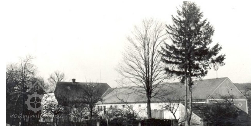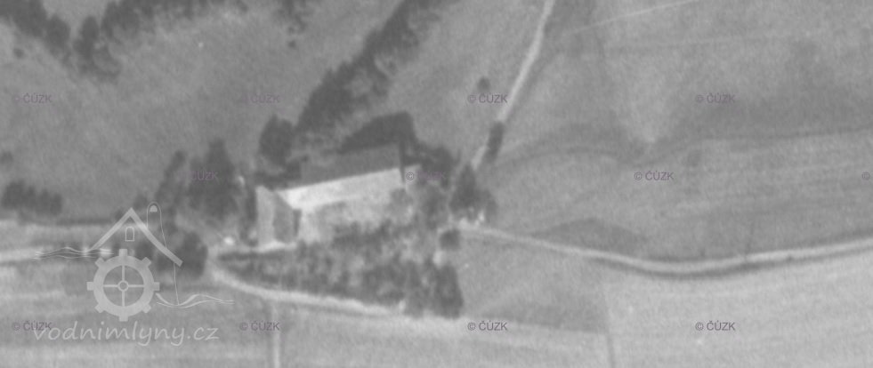 V roce 1958 ještě stojí mlýn, který s hospodářskou budovou tvoří tvar písmene L.