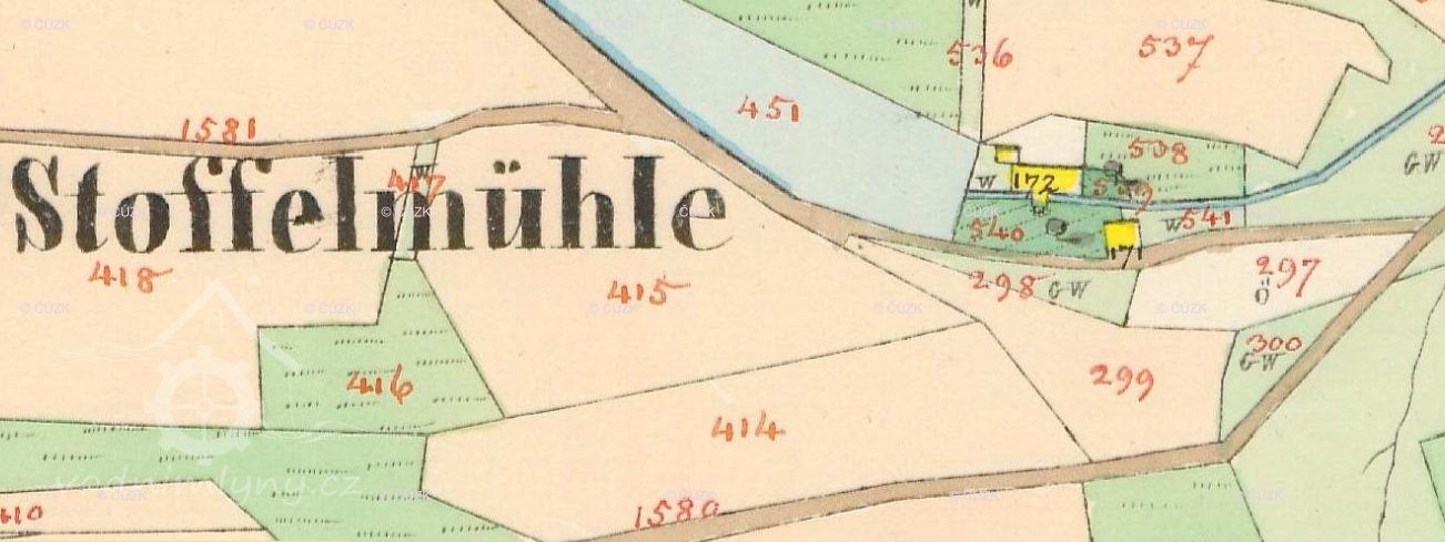 roku 1789 byl nově vystavěn. Žil zde například Johann Binhack, který mlýn prodal roku 1794 dceři Barbaře a Josefu Schlöglovi z Postřekova. 1838: větší spalná budova, na vodním toku přístavek, pila, před mlýnem rybníček, roku 1840 byl přepsán na desátníka Johanna Schlögla, syna vdovy Barbary.