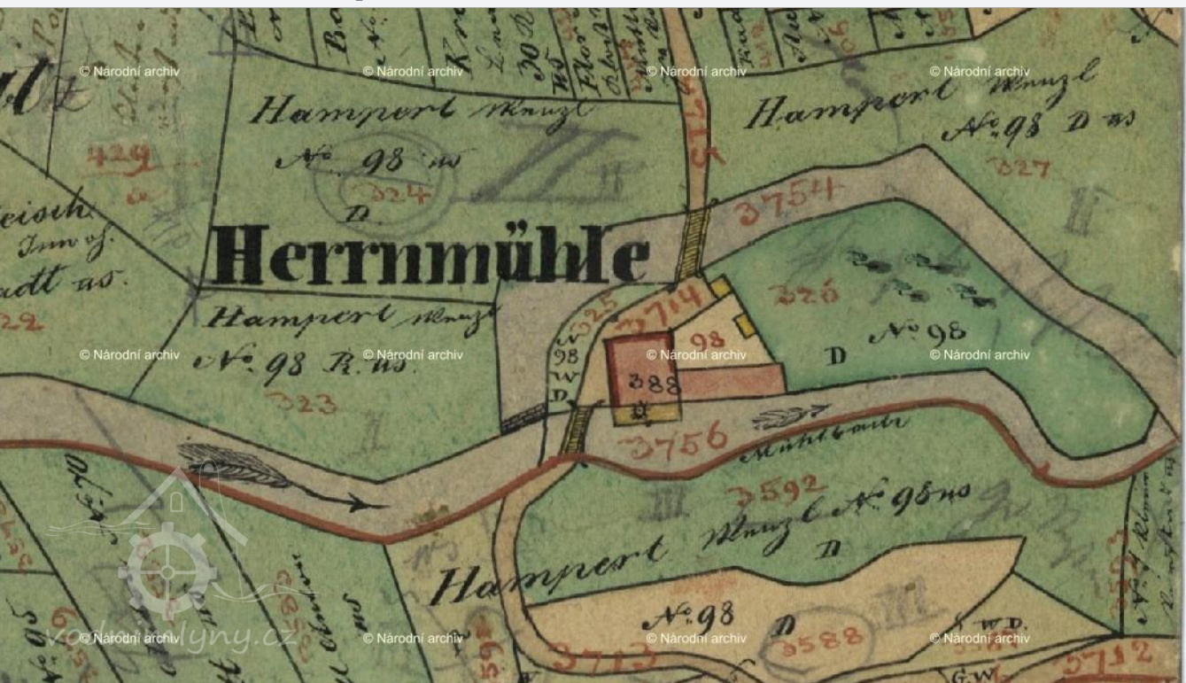 Šlo o vrchnostenský mlýn, k roku 1838 byl majitelem Václav Hampert.