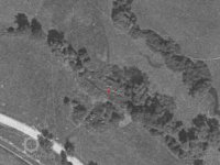 Letecký snímek z roku 1958 - pouze zbytky po zbořených stavbách.