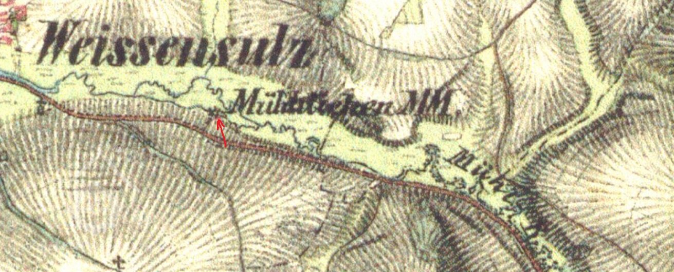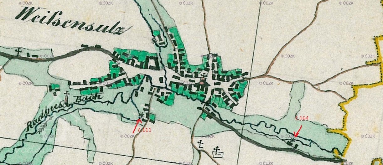 1838 – Na skice i otisku stabilního katastru je na náhonu z Radbuzy zakreslena obdélníková, ještě spalná budova s jedním kolem a nad ní druhá spalná budova. Majitelem Anton Czada.