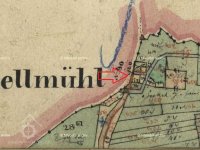 Na mapách stabilního katastru z roku 1838 je mlýn vyobrazen jako nevelká dřevěná stavba s jedním kolem. Jako mlynář je zde uváděn Johann Seckel.